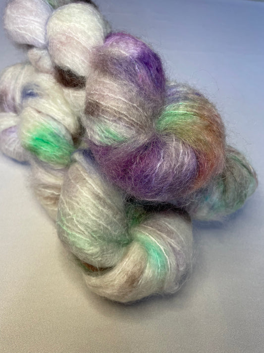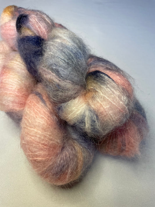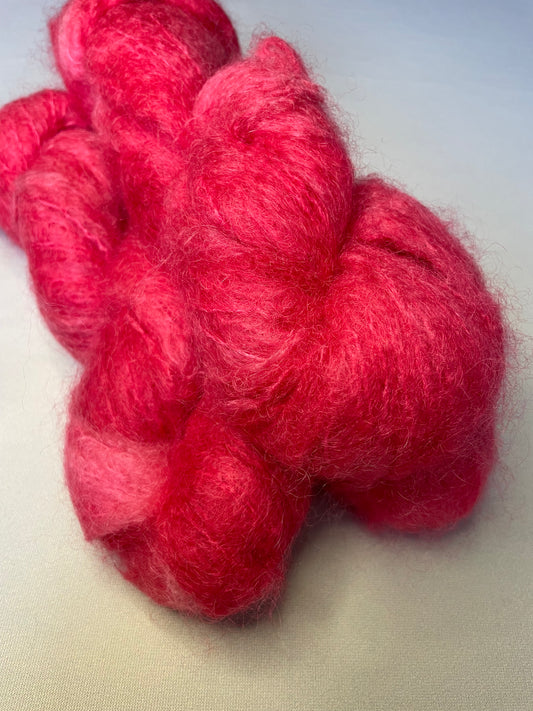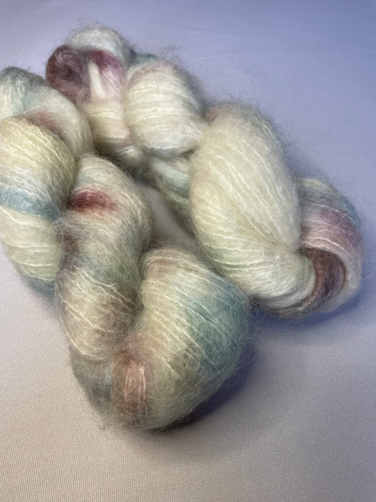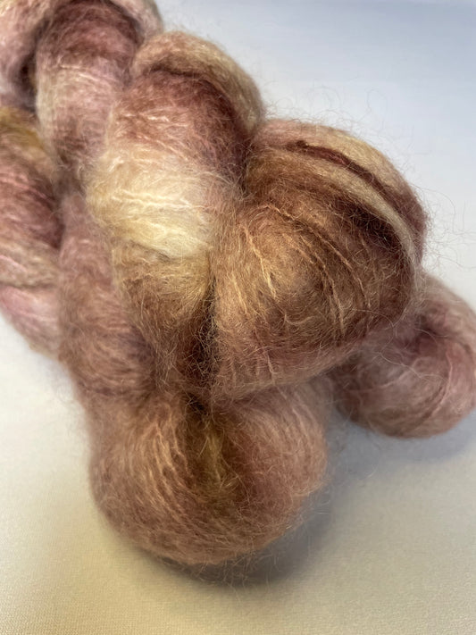 Fat Mohair er en tyk Mohair-kvalitet bestående af 78% Kid Mohair, 13% Merino og 9% nylon. Garnet kan både strikkes alene eller sammen med f.eks. Merino Singles eller Merino Sock. Fat Mohair er særligt kendt for at blive brugt i Marble Sweater fra PetiteKnit.