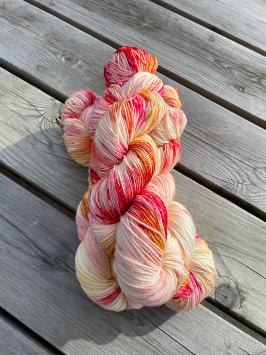 Merino Sock er et lækkert strømpegarn bestående af 75% superwash-behandlet merino og 25% nylon. Garnet er både blødt og slidstærkt og er derfor velegnet til bl.a. sweater, babystrik og selvfølgelig strømper. Strikkes Merino Sock alene, kan der rammes en strikkefasthed på ca. 30 m på p ind 2,5 mm, hvilket passer til mange strikkeopskrifter på strømper. Med en følgetråd af f.eks. Silk Mohair kan der opnås en strikkefasthed på 20-21 m, hvilket passer til mange opskrifter på sweatre og babystrik.